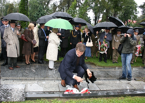 Kwiaty pod pomnikiem poległych żołnierzy złożyli: poseł Andrzej Czerwiński, prezydent Ryszard Nowak wraz z wiceprezydent Bożeną Jawor, starosta Jan Golonka, wiceprzewodniczący Rady Miasta Stefan Chomoncik oraz radni: Bogumiła Kałużny i Grzegorz Dobosz, kombatanci, delegacje szkół, przedstawiciele Wojska Polskiego, Policji, Straży Pożarnej i Straży Miejskiej.