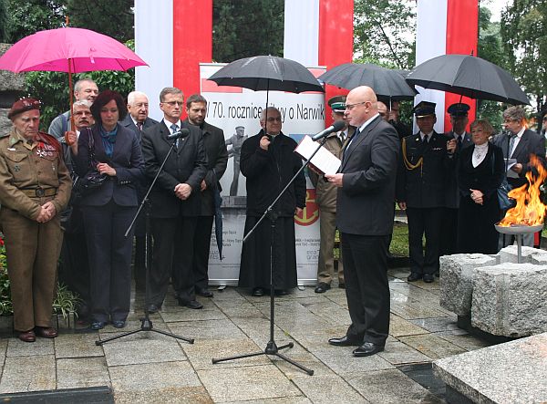 „Rocznicowe uroczystości zaplanowaliśmy na 5 czerwca. Niestety, i nas choć nie tak dotkliwie i tragicznie jak inne regiony Sądecczyzny i kraju dotknęła powódź. Zmuszony byłem odwołać zaplanowane na te czerwcowe dni wydarzenia w mieście. Dopiero dzisiaj możemy spłacić ten swoisty dług wobec bohaterów kampanii norweskiej i bitwy o Narwik w 1940 roku… Współpraca pomiędzy Nowym Sączem i Narwikiem w ciągu minionych lat była intensywna i zgodna z priorytetami współpracy międzynarodowej w ramach umów międzyrządowych, stanowi wzór dla innych miast i gmin. Stosunki między Nowym Sączem a Narwikiem stały się modelowym przykładem współpracy miast partnerskich w Europie, zwłaszcza w zakresie kultury, edukacji, wymiany młodzieżowej. Współpraca partnerów – Nowego Sącza i Narwiku – to nie tylko oficjalne delegacje i porozumienia. To przede wszystkim spotkania wielu mieszkańców, spotkania otwartych i godnych zaufania przyjaciół” – powiedział prezydent Ryszard Nowak.