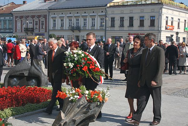 Po zakończonych uroczystościach w Bazylice Kolegiackiej św. Małgorzaty uczestnicy złożyli kwiaty pod pomnikiem Jana Pawła II.