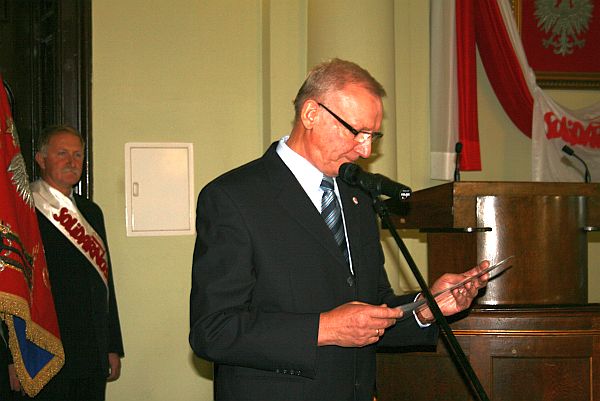 Prezydent Nowego Sącza Ryszard Nowak witając wszystkich licznie zgromadzonych w sali ratuszowej zażartował "dzisiaj historia zatoczyła koło, sądecki ratusz po raz drugi okupowany jest przez >>Solidarność<<, ale w zupełnie innych czasach i z wielką przyjemnością ten ratusz państwu oddajemy" - powiedział prezydent. Następnie prezydent podkreślił, że dzisiaj "Wszyscy, ci starsi, ci młodsi, wreszcie najmłodsi podkreślają zgodnie, że powstanie Solidarności zmieniło bieg historii Polski i Europy.