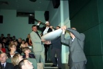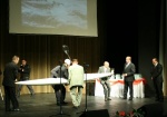 Zaproszeni goście składali pamiątkowe podpisy na kajaku, którym na salę „wpłynął” kajakarski mistrz Dariusz Popiela – syn jednego z braci.