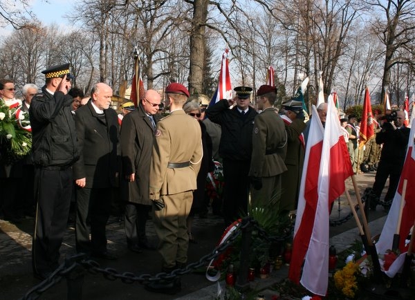 Władze Miasta Nowego Sącza wzięły udział w uroczystościach zorganizowanych z okazji Święta Niepodległości. Parlamentarzyści, przedstawiciele władz wojewódzkich, miejskich władz samorządowych, radni miejscy, przedstawiciele Związku Kombatantów RP i Byłych Więźniów Politycznych – Koło Miejskie w Nowym Sączu, poczty sztandarowe organizacji i stowarzyszeń kombatanckich oraz sądeckich szkół, młodzież zrzeszona w organizacji „Strzelec”, komendanci sądeckich służb mundurowych oraz mieszkańcy miasta spotkali się przy Pomniku Legionistów na Cmentarzu Komunalnym w Nowym Sączu, gdzie złożyli wieńce i wiązanki kwiatów.