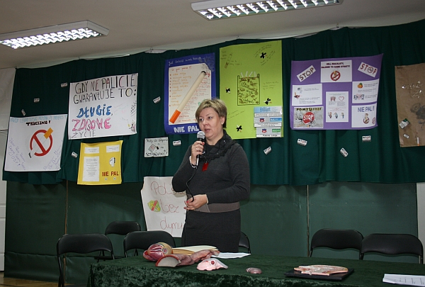 Podczas dzisiejszego spotkania, z okazji przypadającego wczoraj Światowego Dnia Walki z Tytoniem, uczniowie Gimnazjum nr 3 zaprezentowali etiudy teatralne i programy dotyczące profilaktyki nikotynowej.