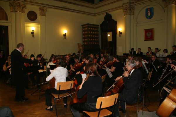 „Ten uroczysty koncert, odbywający się w ramach projektu artystycznego „Salon Muzyczny” jest częścią przygotowań orkiestry nowosądeckiej szkoły muzycznej do grudniowego tournee po Niemczech. Orkiestra symfoniczna Państwowej Szkoły Muzycznej II stopnia od kilku lat bierze udział w polsko-niemieckim projekcie „Junge Philharmonie”, koncertując w Polsce i Niemczech. Poza dorocznymi koncertami szkolnymi, występowała także na Węgrzech, we Francji, Niemczech, na Słowacji i Ukrainie. Współpracujemy również ze słowackimi szkołami muzycznymi w Preszowie i w Starej Lubowni, gdzie nasza orkiestra została bardzo dobrze przyjęta. Repertuar orkiestry to m.in. dzieła Astora Piazzolli, Bolero Maurice Ravela, Rhapsody in blue George Gershwina, Koncert hebanowy Igora Strawińskiego czy wybrane symfonie Beethovena, Dvoraka i Brucknera.