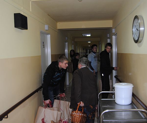 Wcześniej przed wizytą młodzież własnoręcznie przygotowała upominki oraz kartki świąteczne z życzeniami dla pensjonariuszy Domu Pomocy Społecznej.