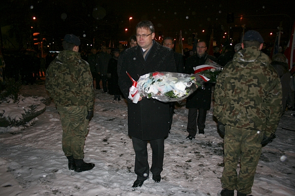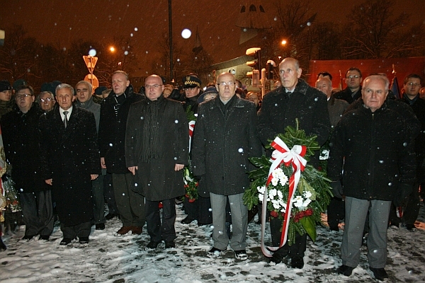 Po uroczystościach kościelnych uczestnicy obchodów 29. rocznicy wprowadzenia stanu wojennego przeszli pod pomnik „Solidarności”, gdzie złożono wieńce i wiązanki biało-czerwonych kwiatów. Prezydent Ryszard Nowak powiedział m.in. „Honorowanie dzisiaj generała Jaruzelskiego, twórcy stanu wojennego, to znak, że z Polską dzieje się coś niedobrego”. Dodał również, że cieszy się bardzo widząc z roku na rok coraz więcej młodzieży, co świadczy o tym, że młodzi ludzie pamiętają o bolesnych wydarzeniach sprzed lat.