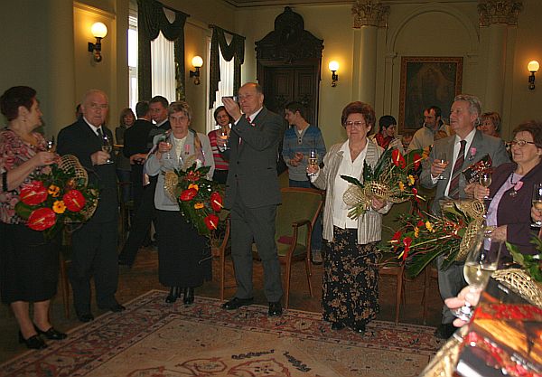 Najlepsze życzenia i gratulacje Wiktorii i Arnoldowi Florkom, Zofii i Franciszkowi Góreckim, Krystynie i Ignacemu Kuciom, Zofii i Antoniemu Nieciom, Danucie i Józefowi Obrzudom oraz Władysławie i Stefanowi Wrońskim złożył prezydent Ryszard Nowak.
