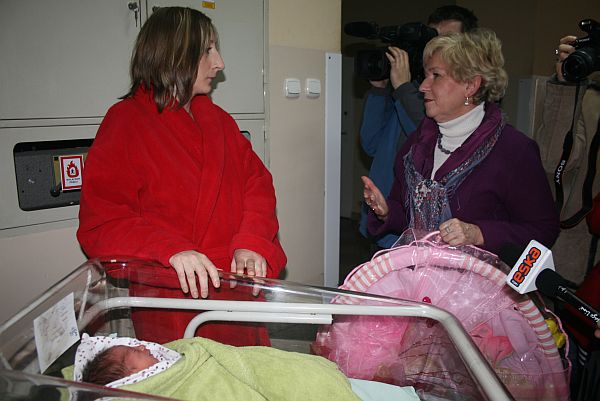 Wiceprezydent Bożena Jawor złożyła gratulacje rodzicom, a maleństwu życzyła zdrowia i pomyślności. Zaprosiła w imieniu prezydenta Ryszarda Nowaka za rok do ratusza.
