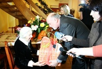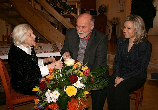 Pani Jadwiga Denkowska kończy dzisiaj 100 lat. Z tej okazji życzenia i gratulacje złożył jubilatce wiceprezydent Jerzy Gwiżdż, który życzył zdrowia, pomyślności i tak wspaniałej kondycji jeszcze przez długie lata. Do życzeń dołączyła się również Kierownik Urzędu Stanu Cywilnego Malgorzata Antkiewicz-Wójs. Pani Jadwiga otrzymała listy gratulacyjne od Prezesa Rady Ministrów i Wojewody Małopolskiego oraz pamiątkową księgę z życzeniami od władz miasta, kwiaty i urodzinowy upominek - radiomagnetofon ze słuchawkami, ponieważ jak sama podkreśla bardzo lubi słuchać muzyki, a nawet czasem zatańczyć.
