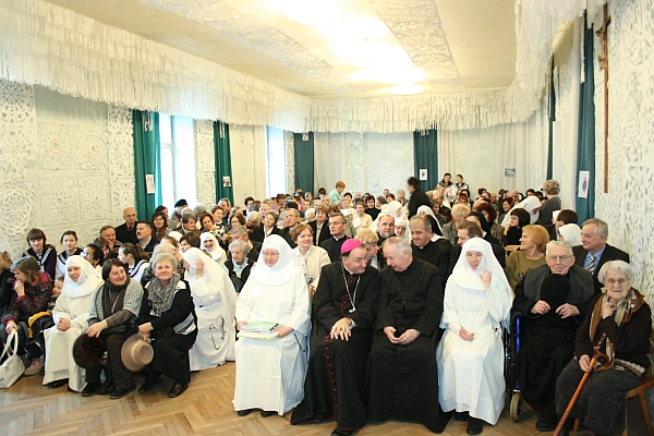 Następnie zaproszeni goście, wśród których znalazła się wiceprezydent Bożena Jawor oraz wierni z parafii wysłuchali referatu pt. „Zawsze byłam szczęśliwa”, podczas którego siostra Wawrzyna - Matka Generalna Zgromadzenia Sióstr Niepokalanego Poczęcia NMP (CSIC) przedstawiła życiorys Błogosławionej Matki Marceliny Darowskiej. Również uczennice szkoły sióstr niepokalanek przygotowały okolicznościowy program artystyczny pt. ”Wspomnienia Irenki”, który bardzo podobał się zebranym. Oklaskom nie było końca.