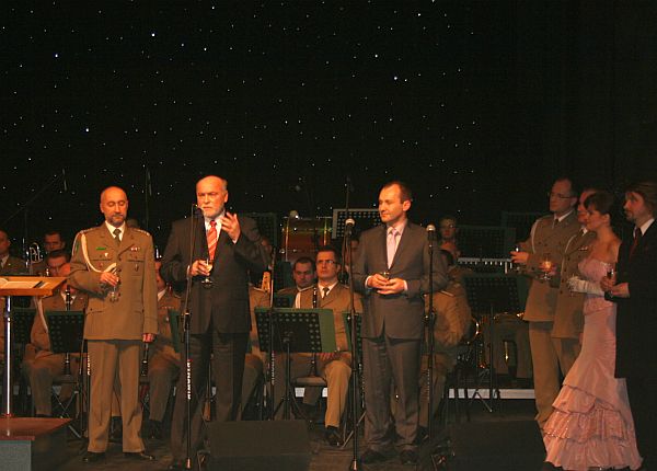 Tradycyjnie w przerwie koncertu życzenia złożyli marszałek Małopolski Marek Sowa i wiceprezydent Nowego Sącza Jerzy Gwiżdż. Wiceprezydent podkreślił, że nadchodzący rok przyniesie nam wiele ważnych wydarzeń. „Obchodzić będziemy pierwszą rocznicę katastrofy pod Smoleńskiem, a w maju odbędą się uroczystości związane z beatyfikacją Ojca Świętego. Życzę wam zdrowia i pomyślności oraz spełnienia marzeń" – mówił wiceprezydent Jerzy Gwiżdż, który w imieniu prezydenta Ryszarda Nowaka wzniósł w Sokole noworoczny toast.