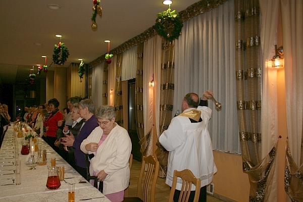 Błogosławieństwa zebranym udzielił ks. Józef Wojnicki. Wiceprezydent Jerzy Gwiżdż złożył wszystkim najlepsze życzenia noworoczne i wzniósł toast. Po modlitwie mieszkańcy przełamali się opłatkiem, po czym zasiedli do wspólnego stołu. Był również czas na rozmowy z sąsiadami oraz śpiewanie kolęd, które intonował ks. Józef Wojnicki.