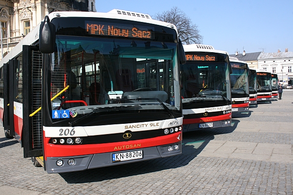 10 niskopodłogowych autobusów miejskich o długości 8,5 – 9 metrów o zmniejszonej emisji zanieczyszczeń, przystosowanych do przewozu osób niepełnosprawnych zakupiono ze środków unijnych w ramach Małopolskiego Regionalnego Programu Operacyjnego. Projekt pod nazwą „Rozbudowa i modernizacja infrastruktury techniczno-komunikacyjnej lokalnego transportu publicznego w Nowym Sączu wraz z wymianą taboru autobusowego”. Kwota dofinansowania to ponad 7,6 mln zł, przy całkowitej wartości projektu – 13,4 mln zł.