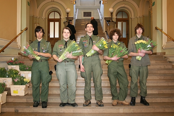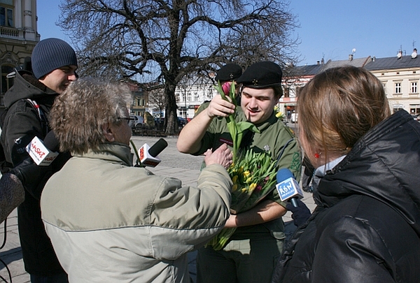 Harcerze z drużyny "Czarna Jedynka" tradycyjnie 8 marca, w imieniu prezydenta Ryszarda Nowaka, wręczali paniom kolorowe tulipany. Wraz z kwiatami harcerze przekazywali najlepsze życzenia.