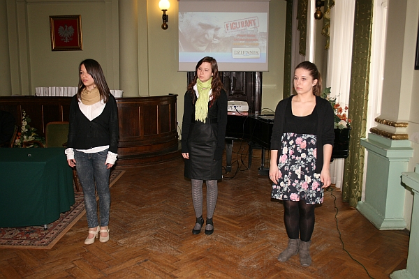 Zanim przystąpiono do prezentacji prac i nagradzania laureatów, przybyła do sali reprezentacyjnej młodzież wysłuchała poezji Karola Wojtyły w wykonaniu grupy Teatru Żywego Słowa, prowadzonego przez Agnieszkę Ćwikłę z Pałacu Młodzieży w Nowym Sączu. Następnie został wyświetlony fragment dokumentu poświęcony inwigilacji w czasach PRL metropolity krakowskiego Kardynała Karola Wojtyły. Podczas prezentacji multimedialnej można było podejść do stołu i obejrzeć wszystkie prace, które napłynęły na konkurs. Wyróżniono i nagrodzono kilka najciekawszych, m.in. „Bezimienny wróg klasowy w Śnietnicy”, „Maksymilian Ratajski”, „Władysław Myśliwiec”, „Historia Romana Stramki”, „Stryj Julian Zapała, pseudonim Lampart”, „Henryk Najduch” i inne. Wręczono trzy nagrody pieniężne za zajęcie pierwszego, drugiego i trzeciego miejsca w dwóch kategoriach – szkoły gimnazjalne i ponadgimnazjalne. Wręczono także dwa wyróżnienia. Wszyscy uczestnicy konkursu otrzymali pamiątkowe listy gratulacyjne, upominki i prezentacje multimedialne przygotowane przez Instytut Pamięci Narodowej. Laureatami konkursu zostali – w kategorii gimnazja – pierwsze miejsce: Diana Wąs z Gimnazjum w Klęczanach, drugie miejsce: Ewa Sroczyk z Gimnazjum nr 1 w Gorlicach, trzecie miejsce: Bożena Myśliwiec z Gimnazjum w Gołkowicach. Wyróżnienie w tej kategorii otrzymała Maria Kozak z Gimnazjum w Siedlcach.W kategorii szkoły ponadgimnazjalne laureatami konkursu zostali – pierwsze miejsce: Dorota Świętej i Dominika Pękala z Zespołu Szkół Ponadgimnazjalnych w Krynicy Zdroju, drugie miejsce:Karolina Orlecka z I Liceum Ogólnokształcącego w Nowym Sączu, trzecie miejsce: Klaudia Zapała z I Liceum Ogólnokształcącego w Mszanie Dolnej. Wyróżnienie w tej kategorii otrzymała Klaudia Zapała z I Liceum Ogólnokształcącego w Nowym Sączu.