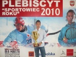 Sportową imprezą roku została gala boksu zawodowego o tytuł Mistrza Świata w wadze Junior Ciężkiej jaka odbyła się 12 czerwca 2010 roku w Krynicy Zdroju- nagrodę w imieniu grupy KnockQut Promotions odebrał dyrektor Daniel Bartłomowicz. Daniel Weimer otrzymał nagrodę Sportowe Skrzydła za książkę Złota Księga Sandecji 1910-2010. Po wręczeniu wyróżnień rozpoczęło się wielkie odliczanie. Na miejscu 11 uplasowała się Beata Leśnik Małek zawodniczka Superfightera, która w ubiegłym roku zdobyła brązowy medal w Mistrzostwach Europy w kick-boxingu. Miejsce 10 zajął Arkadiusz Aleksander napastnik Sandecji Nowy Sącz- nagrodę w jego imieniu odebrał prezes klubu Andrzej Danek. Aleksander- niestety nie mógł uczestniczyć w gali bowiem nazajutrz w Świnoujściu Sandecja rozgrywała mecz z tamtejszą Flotą. Na miejscu 9 uplasował się Bartosz Dutka karateka z nowosądeckiego klubu Karate Kyokushin. Bartosz Dutka to zdobywca srebrnego medalu Pucharu Polski w karate kyokushin w kategorii powyżej 90 kg. Miejsce ósme przypadło słowackiemu hokeiście, który na co dzień występuje w barwach KTH Krynica. Na miejscu 7 znalazł się Marcin Łacny mistrz świata federacji WUAP w wyciskaniu sztangi leżąc. Tytuł zdobył podnosząc 250 kilogramów! Na kolejnym miejscu znalazł się bramkarz Sandecji Marek Kozioł. Miejsce piąte przypadło Mateuszowi Górowskiemu mistrzowi polski juniorów w boksie. Miejsce czwarte przypadło Tomaszowi Kowalowi. Tomasz Kowala ujawnił, że za miesiąc dojdzie do starcia polskich siłaczy z amerykańskimi (dwie potęgi światowe) i zamierza „strzepać tyłek Amerykanom”, sala słowa Kowala przyjęła z aplauzem. Na trzecim miejscu uplasował się popularny Boom Boom czyli Łukasz Pławecki. Druga pozycja przypadła bokserowi Pawłowi Kołodziejowi, który sześć dni wcześniej obronił tytuł mistrza świata. Walkę tą można było oglądnąć w TV Polsat. Na miejscu pierwszym uplasował się Marcin Gawron- wschodząca gwiazda tenisa. Marcin ma na swoim koncie finał juniorskiego Wimbledonu. Niestety zwycięzca nie dotarł gdyż w Częstochowie zepsuł mu się samochód. Nie mogliśmy tego przewidzieć- mówi Tomasz Michałowski prezes Stowarzyszenia ”Dla Miasta”. Rozmawiałem z Marcinem Gawronem rano, kiedy wyjeżdżał z Poznania wszystko wskazywało, że z nami wieczorem będzie. Na zakończenie głos zabrał marszałek województwa Andrzej Sorys, który pogratulował wszystkim nagrodzonym. Marszałek Sorys podkreślił, że wyniki przez nich osiągane są doskonałą promocją Małopolski. Marszałek przekazał okolicznościowy adres dla Stowarzyszenia ”Dla Miasta ” organizatora Plebiscytu. Organizatorzy uhonorowali też firmy , które wspierały finansowo organizację plebiscytu tj. SKI Hotel z Suchej Doliny, firmę Dolina Smaku, drukarnie Netrium, perfumerie Douglas, salon Camille Albane, Mariposa MED. SPA – nagrody wręczali Tomasz Michałowski główny organizator imprezy oraz Rafał Kmak redaktor naczelny Tygodnika Nowosądeckiego Miasto.