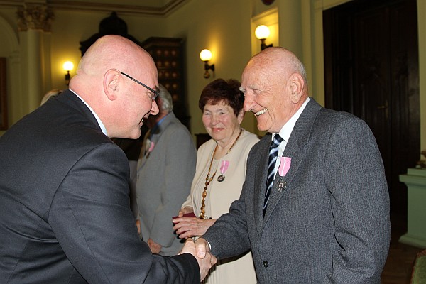 Następnie odznaczył małżonków "Medalami za długoletnie pożycie małżeńskie" przyznanymi przez Prezydenta RP. Pary w prezencie otrzymały również kwiaty, upominki oraz pamiątkowe albumy.