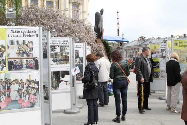 Pięknie prezentują się zdjęcia ze spotkań Ojca Świętego z naszymi zespołami regionalnymi. Zdjęcia przekazała również Straż Graniczna, Orkiestra Reprezentacyjna Straży Granicznej, która gościła u Ojca Świętego. Są również zdjęcia z wizyty Ojca Świętego w Starym Sączu. Wystawę na sądeckim Rynku będzie można oglądać do końca maja.