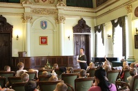 Niektóre z dzieci były w ratuszu po raz pierwszy, dlatego też nie zabrakło wielu pytań na temat powstania budynku, historii obrazów i pamiątek zgromadzonych w sali reprezentacyjnej ratusza.