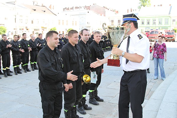 Każdy zespół otrzymał pamiątkowy dyplom uczestnictwa. Pierwsze miejsce i główny puchar zdobyła drużyna jednostki ratowniczo-gaśniczej nr 2 Komendy Wojewódzkiej PSP z Krakowa. Dowodził nią kpt. Piotr Marchewka. W imieniu załogi odebrał on także ogromny puchar przechodni. Za nimi, na drugim miejscu uplasowała się drużyna JRG Komendy Powiatowej PSP w Gorlicach. Trzecie miejsce wywalczyła jednostka ratowniczo-gaśnicza nr 7 KW PSP w Krakowie. Puchary wręczał m.in. małopolski komendant wojewódzki PSP w Krakowie – st. bryg. Andrzej Mróz.