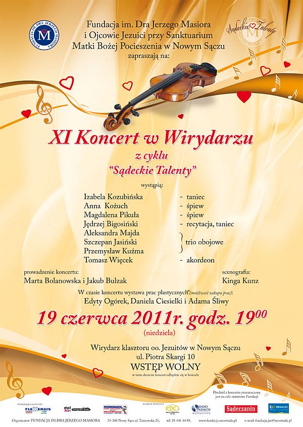 Koncerty w Wirydarzu z cyklu „Sądeckie Talenty”, organizowane przez Fundację im. Dra Jerzego Masiora w Nowym Sączu to projekt, którego głównym celem jest promowanie i wspieranie rozwoju utalentowanych artystycznie młodych Sądeczan. Dotychczas zorganizowano 10 tego typu koncertów. Aktualnie przygotowywane są dwa koncerty. Koncert 11, który odbędzie się 19 czerwca, natomiast Koncert 12 zaplanowany jest na 28 sierpnia 2011 r. Wystąpią kolejne grupy młodych artystów. W czasie koncertów wystawione będą również prace plastyczne.