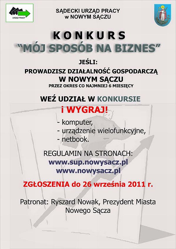 Promocja przedsiębiorczości i samozatrudnienia, zachęta do tworzenia nowych miejsc pracy i popularyzacja aktywności to najważniejsze cele konkursu „Mój sposób na biznes”. Konkurs organizowany jest przez Sądecki Urząd Pracy pod patronatem Pana Ryszarda Nowaka, prezydenta Nowego Sącza.