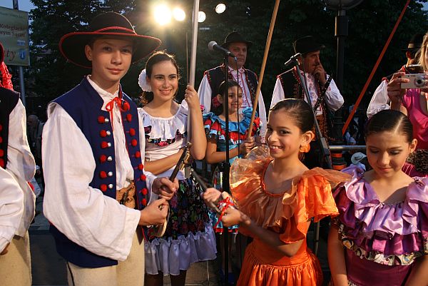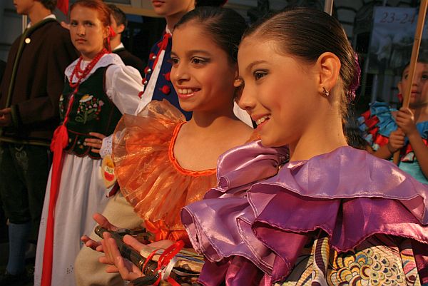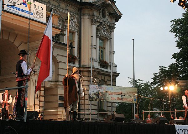 Kolejna godzina należała do uczestników Festiwalu. Tańcem, śpiewem, zabawą zapraszali nowosądeczan na kolejne narodowe dni. Dwanaście zespołów, sześć par, a wszystko płynnie, bo gdy występował jeden zespół, już kamracka kapela szykowała się po drugiej stronie. Krótka zapowiedź Józka Brody, poszukiwanie mamy zagubionej Kasi, i dalej, kolejny dzień, kolejna para kamracka. I znów zapowiedź. "Hej, Hej!" I jak echo "Hej, Hej!" Od publiczności. Taniec, śpiew, zabawa. Parę słów o zespole. Jeszcze brzmią słowa, jeszcze dźwięczy fujarka. ale już gra kolejna kapela, już następne dzieci wbiegają na scenę spod ratuszowego balkonu.