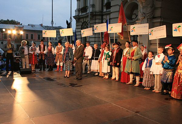 Oficjalnie na sądeckiej ziemi uczestników festiwalu przywitał wiceprezydent miasta Jerzy Gwiżdż. Przyznał, że ma wyjątkowe szczęście i zaszczyt, bo 19 lat temu stał w tym samym miejscu. Powiedział wtedy, że będzie to prawdziwe święto dzieci gór przez długie lata. I tak się stało. Już 19. raz spotykają się dzieci z różnych kontynentów, a ich przyjaźnie będą trwać. Idea Święto Dzieci Gór nie sprowadza się tylko do przekazania treści artystycznych. Jest znacznie głębsza. Chodzi o to, żeby się naprawdę poznawać poprzez to, co każdy wynosi z własnej kultury. Gospodarz miasta prosił, by uczestnicy przekazali swoje wrażenia z pobytu w Nowym Sączu w miejscach, gdzie mieszkają. Świat się bardzo skurczył komunikacyjnie, ale poprzez takie kontakty rozszerza się kulturowo. Kończąc pan prezydent serdeczne podziękował wszystkim, którzy tworzą Festiwal, gdyż otwierają w ten sposób jeszcze jedno okno na świat dla Nowego Sącza.