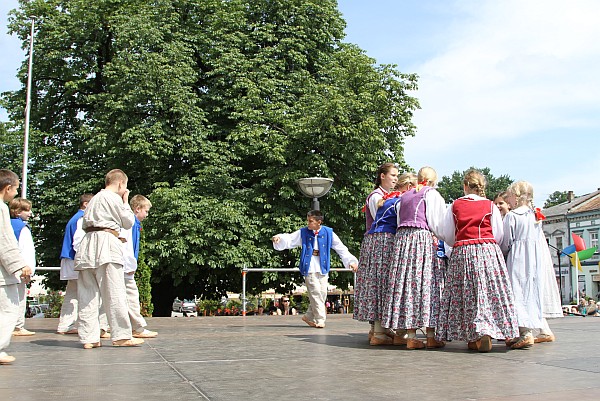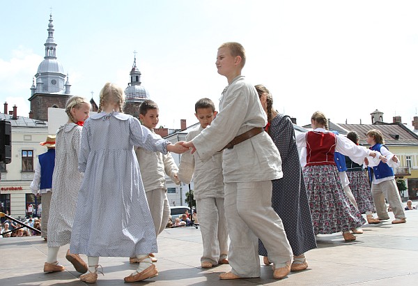 Na Festiwalu zespół zaprezentuje program „Na świętych Piotra i Pawła”. Dzieci pod opieką śpiącego na ławie ojca, bawią się w izbie. Z kościoła wraca matka. Zachęca dzieci do uporządkowania zabawek i zapowiada przyjście gości. Do izby przybiega chłopiec z sąsiedztwa, prosząc o pomoc przy ocieleniu krowy. Kobieta budzi męża, który wychodzi. Do izby wchodzą kolejni uczestnicy sumy odpustowej wraz z dziećmi. Dorośli są zajęci rozmową, dzieci rozpoczynają wspólną zabawę. Dorośli muszą odbyć próbę muzyki przed wieczorną potańcówką u wójta z okazji odpustu. Dzieci proszą o pozwolenie zatańczenia przy muzyce, na co otrzymują zgodę. Rozpoczynają się tańce. Widowisko kończy się podziękowaniem i wyjściem na nieszpory.