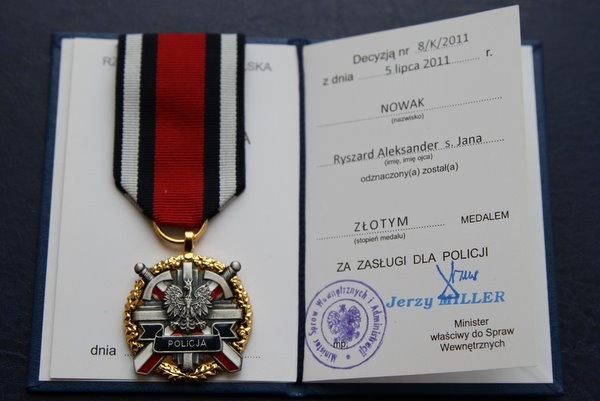Decyzją Ministra Spraw Wewnętrznych i Administracji Jerzego Millera, Prezydent Nowego Sącza Ryszard Nowak został odznaczony Złotym Medalem za zasługi dla Policji. Odznaczenie wręczyli Komendant Główny Policji gen. insp. Andrzej Matejuk i Małopolski Komendant Wojewódzki Policji insp. Andrzej Rokita.