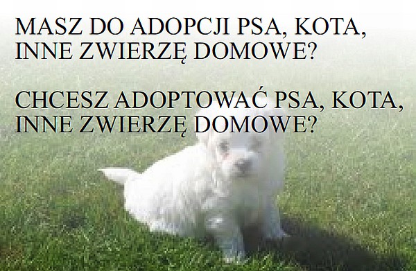 W najbliższą niedzielę (18 września) pod halą MOSiR przy ul. Nadbrzeżnej w Nowym Sączu odbędzie się akcja: MASZ DO ADOPCJI PSA, KOTA, INNE ZWIERZĘ DOMOWE? PRZYJDŹ! organizowana przez Stowarzyszenie Nowosądecka Wspólnota oraz Towarzystwo Opieki nad Zwierzętami Oddział w Nowym Sączu. Każdy, kto chciałby przygarnąć lub oddać w dobre ręce psa, kota lub inne domowe zwierzątko może wziąć udział w akcji, której początek planowany jest na godz. 10.30.