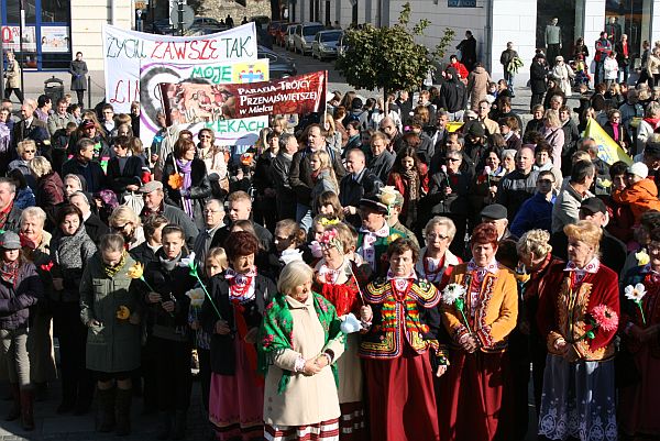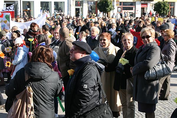 Na sądeckim Rynku symbolicznie wypuszczono gołębie, a zgromadzonych powitał Mariusz Dzierżawski z Fundacji PRO – Prawo do życia. „Toczy się walka między cywilizacją życia, a cywilizacją śmierci. W tej walce przewodził nam papież Jan Paweł II, a teraz cały czas wspiera nas z nieba. Bo największym zagrożeniem dla nas nie są słudzy cywilizacji śmierci, ale nasza bierność i małoduszność” - mówił Mariusz Dzierżawski. Natomiast wiceprezydent Bożena Jawor dziękowała organizatorom marszu za zaufanie, a jego uczestnikom za obecność. „Trwaliśmy dzisiaj mocni na skale wiary. Każdy z nas w swoim sercu mówi „tak” życiu i tym samym realizuje testament, który pozostawił nam Jan Paweł II” - zacytowała słowa Ojca Świętego wiceprezydent Bożena Jawor. Na sądeckim Rynku zorganizowana została kuchnia polowa. Na uczestników marszu czekała grochówka, żurek i ciastka.