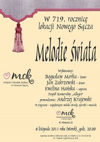 Natomiast koncert urodzinowy z okazji 719. rocznicy lokacji miasta zatytułowany „Melodie świata” odbędzie się o godz. 20.00 w Sali MOK. Wystąpią Bogusław Morka, Jan Zakrzewski i Ewelina Hańska. W programie najpiękniejsze melodie estrady, opery i musicalu.