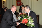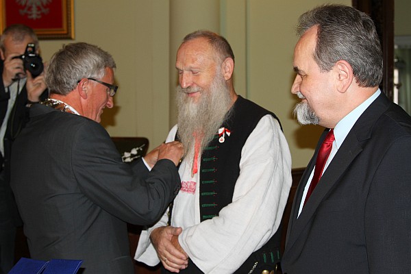 Następnie Przewodniczący Rady Miasta Jerzy Wituszyński wraz z wiceprzewodniczącymi wręczyli tarcze herbowe "Zasłużony dla Miasta Nowego Sącza" Józefowi Brodzie i Antoniemu Malczakowi. Honorowe odznaczenia Rada Miasta w maju przyznała również Helenie Łazarskiej oraz Waldemarowi Malickiemu. Wczoraj odebrali je tylko Antoni Malczak - dyrektor MCK "SOKÓŁ" oraz Józef Broda - dyrektor artystyczny Międzynarodowego Festiwalu Dziecięcych Zespołów Regionalnych "Święto Dzieci Gór”. Pozostała dwójka z przyczyn osobistych nie mogła być w Nowym Sączu. W uroczystej sesji uczestniczył również Honorowy Obywatel Nowego Sącza Krzysztof Pawłowski oraz zaproszeni goście.