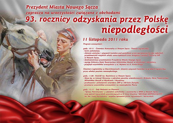 11 listopada 2011 roku w Nowym Sączu odbędą się obchody 93. rocznicy odzyskania przez Polskę niepodległości. O godzinie 10.15 na Cmentarzu Komunalnym, przy Pomniku Legionistów nastąpi złożenie wiązanek kwiatów przez sądeckich parlamentarzystów, przedstawicieli władz samorządowych, delegacje organizacji kombatanckich. Zaplanowano również występ Orkiestry Dętej Towarzystwa Miłośników Muzyki w Mystkowie i Mszalnicy.