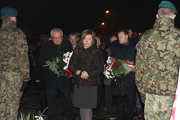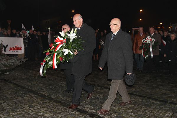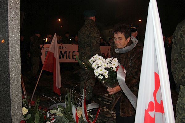 Następnie pod pomnikiem Solidarności złożono wiązanki kwiatów i zapalono znicze. Prezydent Ryszard Nowak mówił o solidarnościowym zrywie, wspomniał dramat grudniowej nocy i niepewność kolejnego dnia.