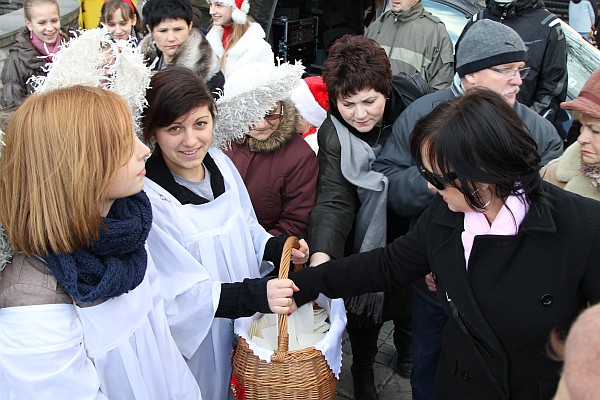Na płycie Rynku pojawili się m.in.: prezydent Ryszard Nowak, wiceprezydenci: Bożena Jawor i Jerzy Gwiżdż, sądeccy posłowie, radni oraz ks. prałat Jan Piotrowski, który poświęcił opłatki.