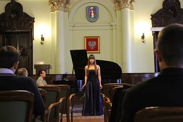Podczas spotkania w ratuszu, goście wysłuchali również występu uczniów Państwowej Szkoły Muzycznej I i II stopnia im. Fryderyka Chopina w Nowym Sączu. Przed gośćmi i uczestnikami konkursu zaprezentowali się uczniowie klasy śpiewu solowego dr Renaty Jonakowskiej-Olszowskiej: Monika Bogdańska, Adrianna Bałuszyńska i Jakub Łęczycki. Młodym artystom akompaniowała Anna Barbara Mirek.