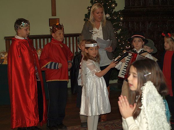 Wszyscy obecni mogli obejrzeć jasełka przygotowane przez wychowawców świetlic, Edytę Basiagę i Małgorzatę Kwiatek-Porębę oraz dzieci z dwóch świetlic Barskie i Zabełcze. Wsparcie muzyczne zapewniała Magdalena Rudzińska ze świetlicy na Osiedlu Helena.