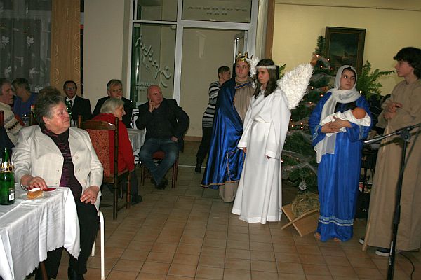 Kolędy, pastorałki i jasełka w wykonaniu młodzieży klas integracyjnych Gimnazjum nr 5 im. Świętej Kingi uświetniły tegoroczne spotkanie noworoczne mieszkańców z Osiedla Gołąbkowice. Tradycyjnie jest to jedno z największych spotkań noworocznych. Co roku w świetlicy Szkoły Podstawowej nr 20 gromadzi się ponad 200 osób. „Wszyscy dopisali – mówił przewodniczący ZO Antonii Rączkowski. Wiem, że jeszcze wiele osób chętnie uczestniczyłoby w tym spotkaniu. Warunki pozwalają na zaproszenie około 200 osób. To wspaniałe spotkania. Ludzie mogą złożyć sobie życzenia, porozmawiać, obejrzeć jasełka a nawet zatańczyć przy dobrej muzyce. Dziękuję wszystkim za pomoc w organizacji tego spotkania”- mówił przewodniczący. Życzenia mieszkańcom przekazał również prezydent Ryszard Nowak. „Cieszę się, że ponownie mogę być z Państwem. Wszelkiej pomyślności, szczęśliwego roku, bez codziennych zmartwień i niepokoju”- mówił prezydent składając mieszkańcom noworoczne życzenia. Wśród gości nie zabrakło ks. prałata Jana Piotrowskiego, radnego Józefa Hojnora, prezesa MPEC Piotra Polka, członków zarządów innych, zaprzyjaźnionych osiedli.