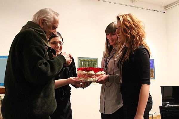 Wernisaż zakończył się akcentem muzycznym. Przy pianinie, zasiadły Anna Barbara Mirek i Elżbieta Malczak, które odegrały dla profesora utwory na cztery ręce.