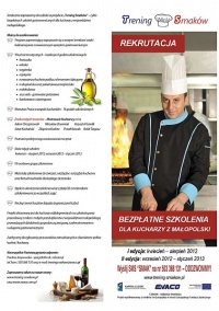 Projekt skierowany jest do kucharzy oddelegowanych na szkolenia przez pracodawcę z mikro i małych przedsiębiorstw z województwa małopolskiego, prowadzących działalność gospodarczą związaną z zakwaterowaniem i usługami gastronomicznymi. Udział w projekcie jest bezpłatny.