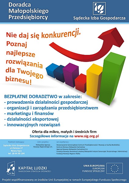 Więcej informacji na stronie www.sig.org.pl lub w biurze Sądeckiej Izby Gospodarczej przy ul. Zielonej 27 w Nowym Sączu (tel. 18 44 99 164).