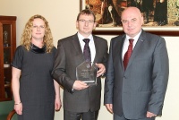 Prezes Spółki NOVA Piotr Leszek Piotrowski odebrał dzisiaj z rąk prezydenta Ryszarda Nowaka statuetkę za zaangażowanie w upowszechnianie edukacji ekologicznej wśród dzieci i młodzieży.