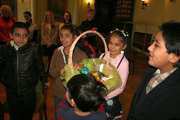Dzieci romskie ze szkół podstawowych 8,9, Zespołu Szkół Podstawowo-Gimnazjalnych nr 1 oraz z Maszkowic wraz z opiekunami działającymi pod auspicjami Małopolskiego Centrum Doskonalenia Nauczycieli odwiedziły sądecki ratusz i na ręce wiceprezydenta Jerzego Gwiżdża przekazały świąteczne życzenia.