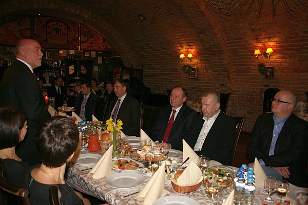 Wiceprezydent Jerzy Gwiżdż podjął na świątecznym spotkaniu przedsiębiorców sądeckich. Na śniadaniu wielkanocnym nie zabrakło właścicieli największych sądeckich firm oraz równie ważnych dla naszego regionu, przedstawicieli średnich i małych przedsiębiorstw. Wiceprezydent witając wszystkich podziękował za udział w tym spotkaniu. „Chciałbym, aby te spotkania przeszły do tradycji. Kilkanaście lat temu, kiedy byłem prezydentem miasta, takie spotkania odbywały się cyklicznie i przynosiły doskonały efekt. Dlatego od dzisiaj inicjujemy wspólne spotkania przynajmniej dwa razy w roku. To bardzo ważne, abyśmy razem dyskutowali na temat rozwoju przedsiębiorczości, ponieważ Nowy Sącz jest postrzegany właśnie przez pryzmat państwa firm” - mówił wiceprezydent Jerzy Gwiżdż. Następnie prezes Kazimierz Pazgan w imieniu wszystkich zaproszonych, podziękował za pomysł organizacji spotkań i podkreślił, że inwestowanie jest ograniczane i hamowane m.in. poprzez zły system podatkowy. „Każdy, kto inwestuje swoje pieniądze już jest odważny. Pan panie prezydencie był naszym bohaterem, kiedy stał pan u boku Lecha Wałęsy, dlatego proszę o wsparcie i pomoc w działaniach na rzecz zmian systemu podatkowego” - mówił Kazimierz Pazgan. Prezes Ryszard Florek zwrócił uwagę, że wielu urzędników żyjących w kapitalizmie myśli o gospodarce jak w socjalizmie. Dlatego należy organizować szkolenia dla urzędników z udziałem przedsiębiorców.