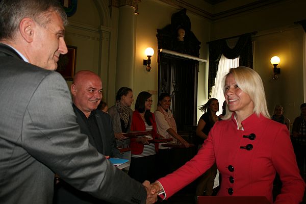 Prezydent gratulował sukcesów i wręczył pamiątkowe grawertony i dyplomy. W sali ratuszowej gościły Katarzyna Łakomska, Karolina Szczurek, Magdalena Lorek, Agnieszka Podrygała, Katarzyna Wańczyk, Małgorzata Śliwa, Anita Sikorska, Elżbieta Skorup, Kamila Szczecina, Victoria Panasiuk, Agnieszka Rusin ( Dąbrowska ), Marzena Polanowska, Katarzyna Kawa, Joanna Gadzina, Małgorzata Raczka, Sylwia Sroka, Żaneta Moskal, Anna Maślanka, Jolanta Kamińska, Agnieszka Leśniak i Karolina Płachta. Nie zabrakło trenerów: Lucyny Zygmunt oraz Mariana Gawędy, prezesa Tomasza Michałowskiego i wiceprezesa Karola Basty.