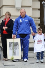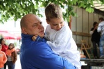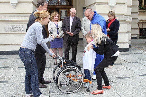 Dla Nikodema bardzo ważną osobą w tym dniu był TOMASZ KOWAL, SRTONGMAN, którego jak tylko zobaczył wyrywał się do niego i nie chciał zejść z jego rąk – był to chyba najwspanialszy widok dla wszystkich – wielki uśmiech Nikodema, który mówił, że nie jest już Nikodemem tylko siłaczem…, a Sponsorzy Tomka – Zarząd firmy ERBET (prezes Tomasz Ćwikowski, Roman Słowik i Rafał Stanuszek) jako pierwsi odezwali się na apel pomocy w zbiórce i zasilili konto zakupu wózka.