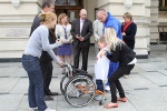 Wszyscy na placu niecierpliwie wyczekiwali na prezent – upominek dla Nikodema! Kiedy wjechał na plac wózek Nikodem był chyba najszczęśliwszy – zaraz przymierzył i już nie chciał zejść!!! Szalał po całym placu i wewnątrz ratusza. Dla Tomka Kowala też była niespodzianka obraz – grafika przedstawiająca Sądecki Ratusz, który podarowała Agata Rolka, kierownik działu plastycznego, dziękując mu za przyjazd do Nowego Sącza na jej zaproszenie.