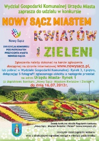 Wydział Gospodarki Komunalnej Urzędu Miasta zaprasza do udziału w konkursie Zarządy Osiedli, mieszkańców domów jedno- i wielorodzinnych, zakłady pracy, wspólnoty mieszkaniowe oraz inne instytucje mające swoją siedzibę na terenie Miasta Nowego Sącza.